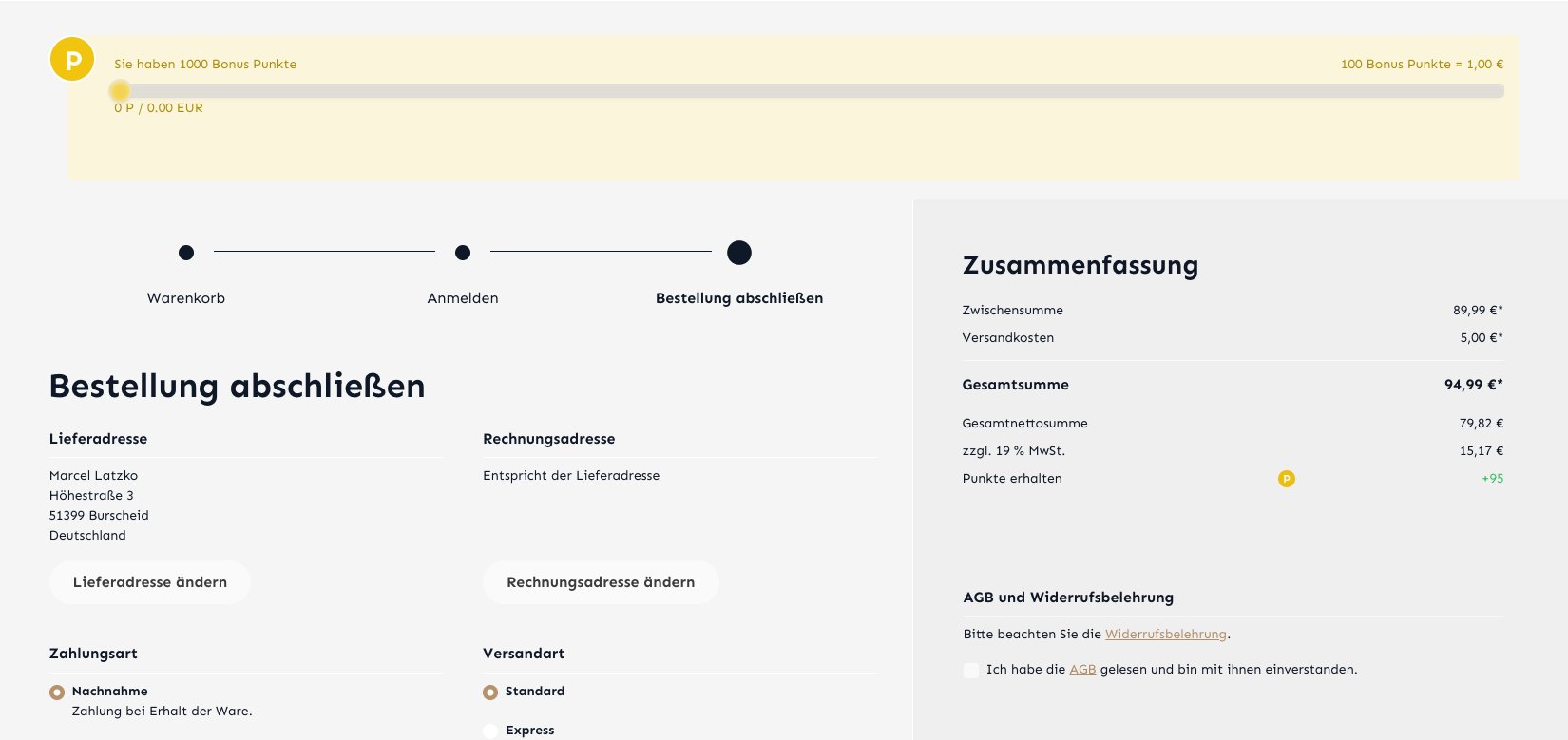 Bonuspunkte als Gutschein bei Bestellung einlösen