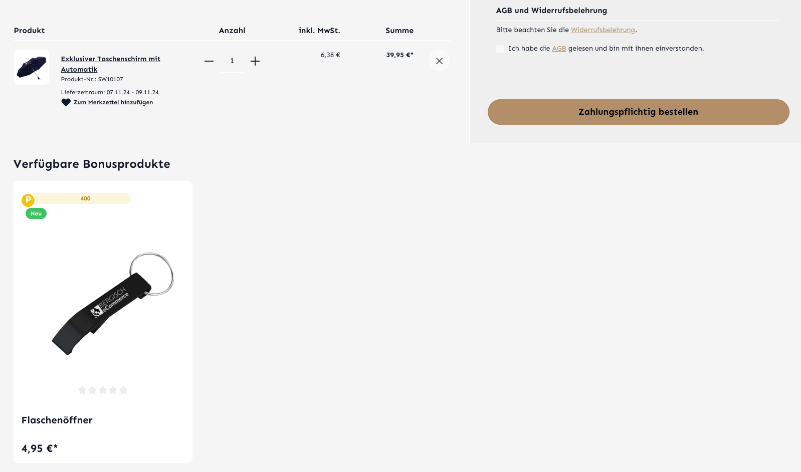 Einlösen von Bonuspunkten als Warenkorbrabatt