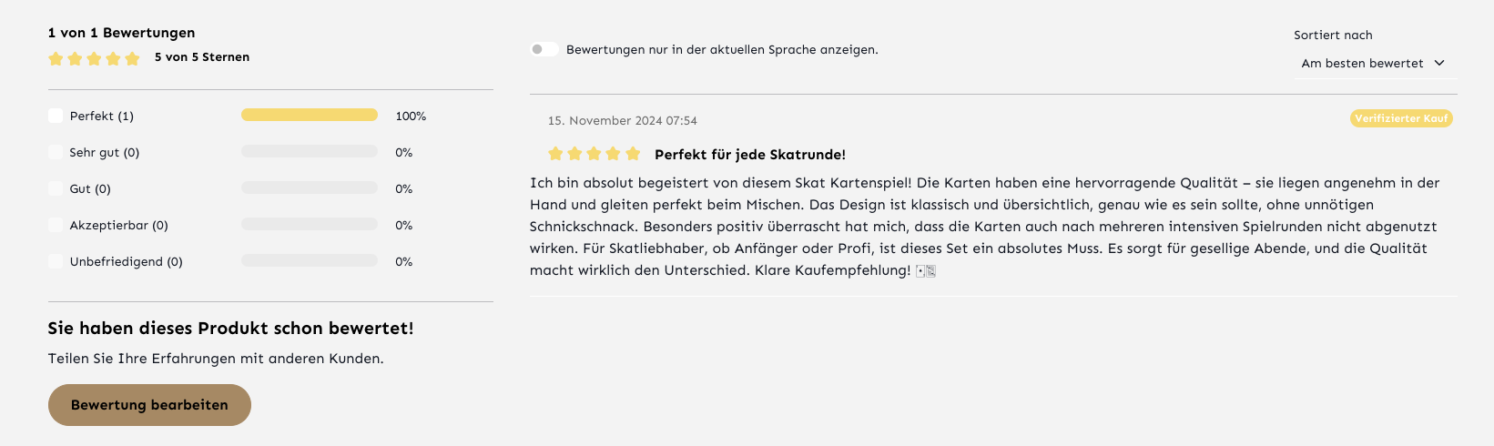 Bewertungen können automatisch freigegeben werden oder durchlaufen eine manuelle Freigabe. Ebenfalls können Bewertungen kommentiert werden vom Shopbetreiber.